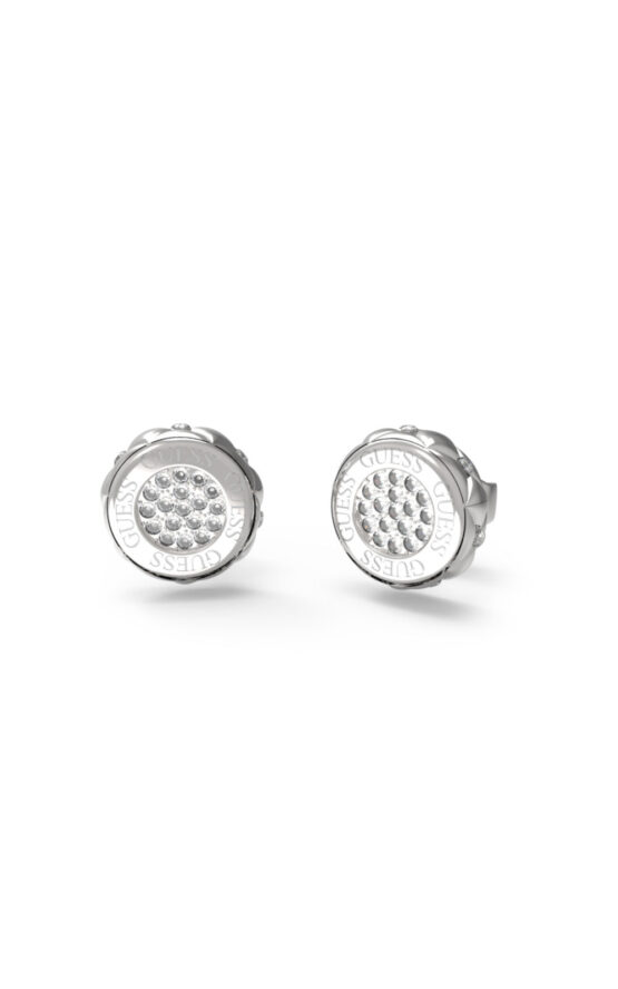 GUESS STEEL TINY PEARLY JUBE05521JWRHT/U Σκουλαρίκια Ασημένια Με Πέτρες Και Λογότυπο