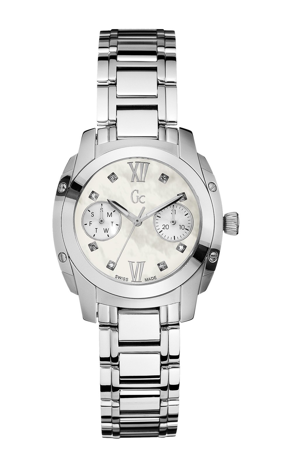 Γυναικείο ρολόι GC A58101L1 διαμέτρου 30mm, με μηχανισμό QUARTZ ακριβείας, έχει ασημένιο καντράν, κάσα και μπρασελέ από ανοξείδωτο ατσάλι.