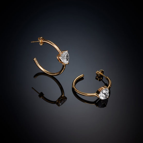 Γυναικεία σκουλαρίκια κρίκοι CHIARA FERRAGNI DIAMOND HEART J19AUV30 χρυσού χρώματος με σχέδιο καρδιές και διαφανείς πέτρες(2,8cm).
