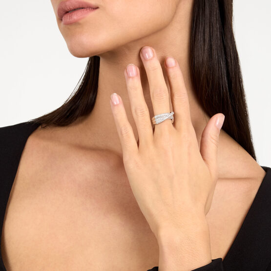 Γυναικείο δαχτυλίδι CHIARA FERRAGNI τρίβερο ασημένιου χρώματος. Είναι κατασκευασμένο από silver 925% και διακοσμημένο με διαφανείς πέτρες.
