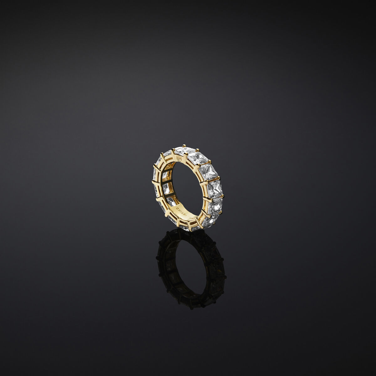 Γυναικείο δαχτυλίδι CHIARA FERRAGNI χρυσού χρώματος με πέτρες. Είναι κατασκευασμένο από κράμα μετάλλων και είναι διακοσμημένο διαφανείς πέτρες.