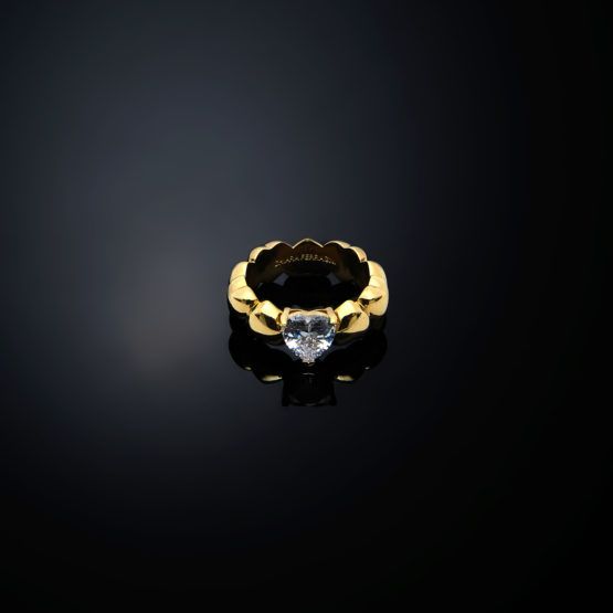 Γυναικείο δαχτυλίδι CHIARA FERRAGNI χρυσού χρώματος με καρδιά. Είναι κατασκευασμένο από κράμα μετάλλων και είναι διακοσμημένο με διάφανη πέτρα.