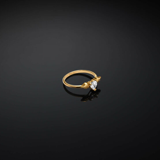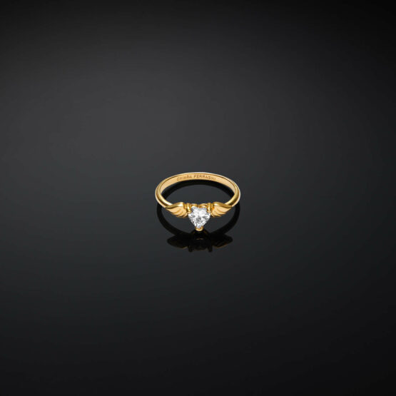 Γυναικείο δαχτυλίδι CHIARA FERRAGNI χρυσού χρώματος με σχέδιο καρδιά με φτερά. Είναι κατασκευασμένο από κράμα μετάλλων και είναι διακοσμημένο με διάφανη πέτρα.