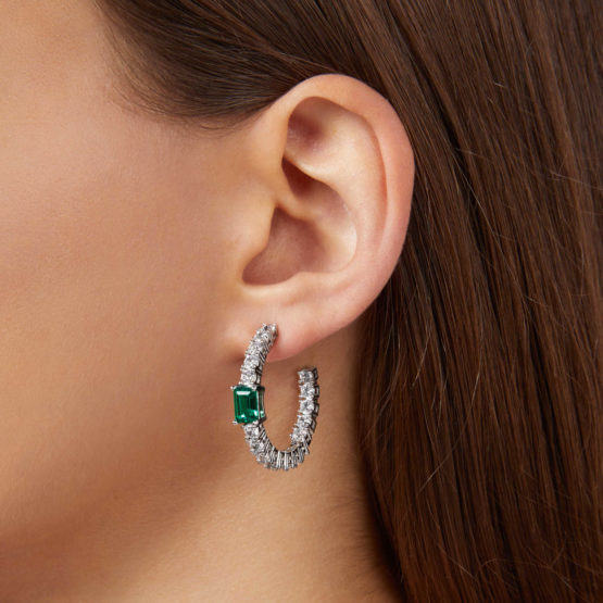 Γυναικεία σκουλαρίκια κρίκοι CHIARA FERRAGNI EMERALD J19AWJ14 ασημένιου χρώματος, με πράσινη και διαφανείς πέτρες(3cm).