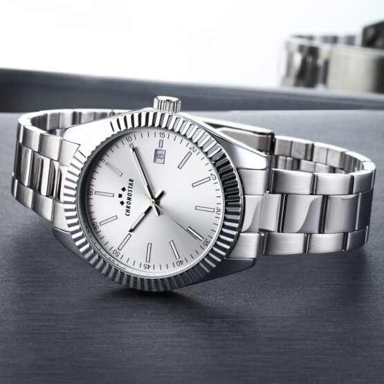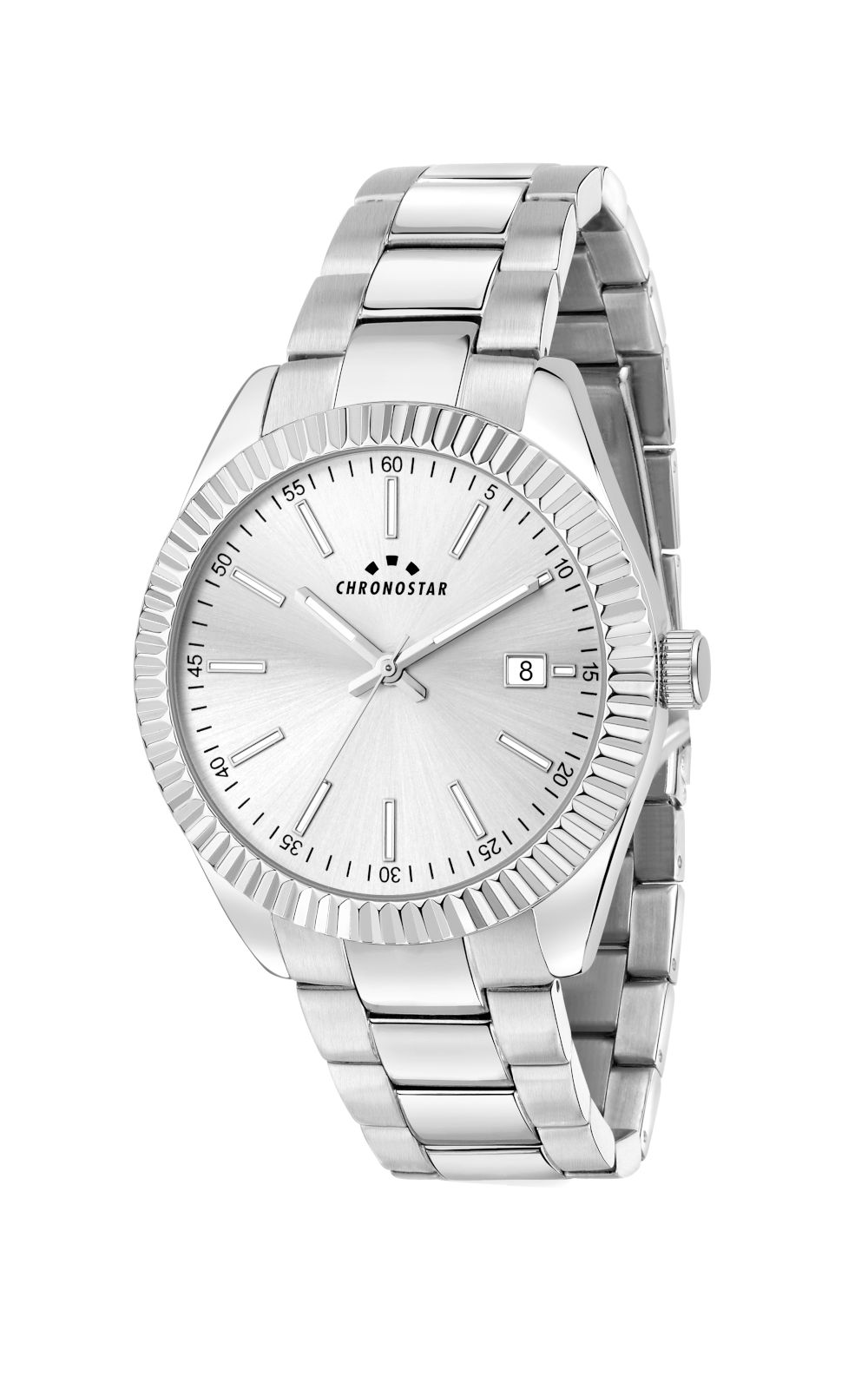 Ανδρικό ρολόι CHRONOSTAR DAILY R3753312003 διαμέτρου 41mm, με μηχανισμό QUARTZ ακριβείας, ασημένιο καντράν και μεταλλική κάσα και μπρασελέ.