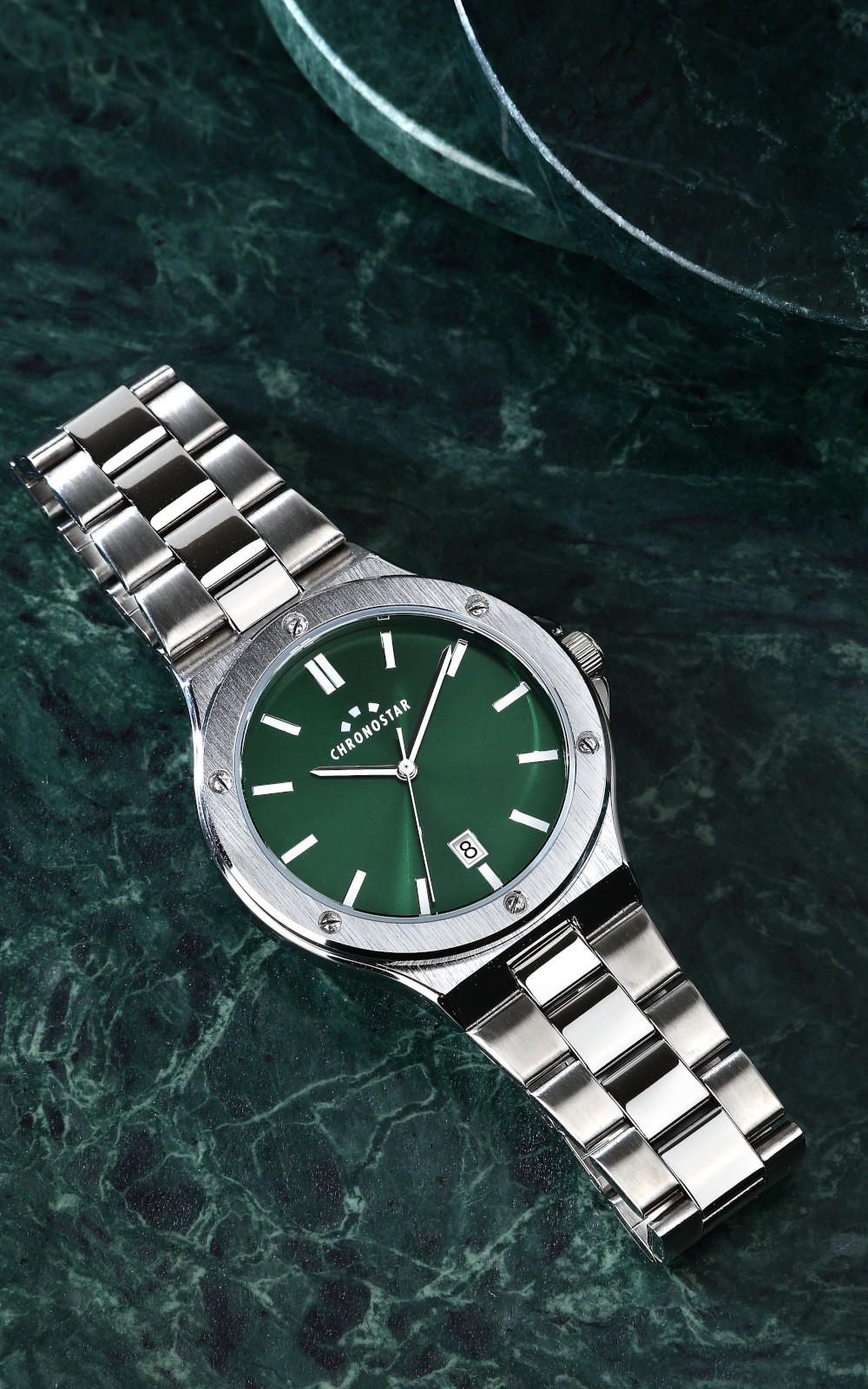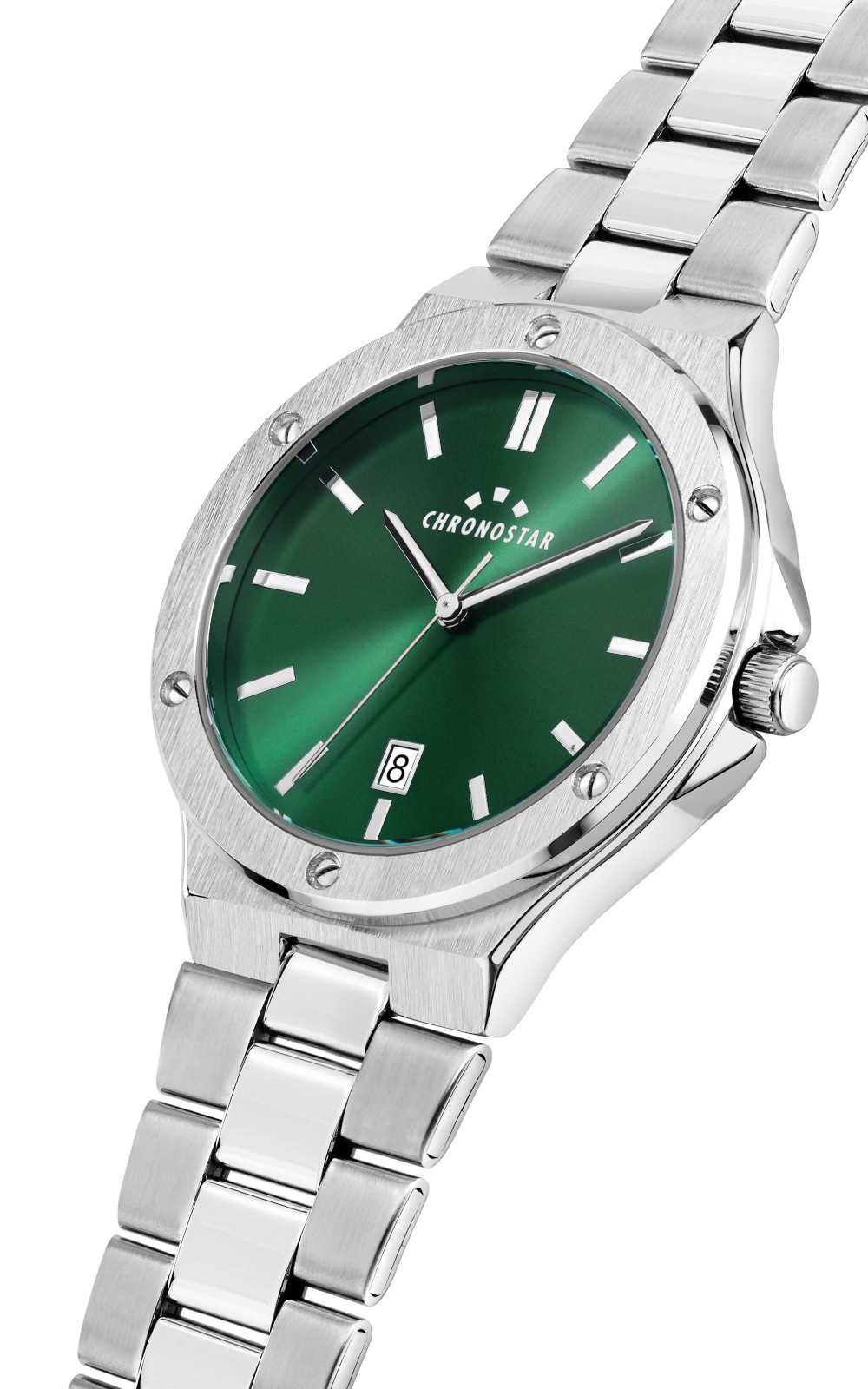 Ανδρικό ρολόι CHRONOSTAR HALT R3753328004 διαμέτρου 42mm, με μηχανισμό QUARTZ ακριβείας, πράσινο καντράν, μεταλλική κάσα και μπρασελέ.