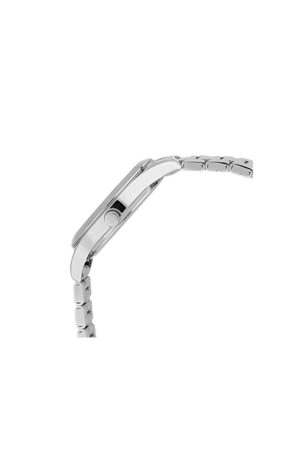 Γυναικείο ρολόι διαμέτρου 32mm με μηχανισμό QUARTZ ακριβείας. Έχει δίχρωμο καντράν με ασημένιους δείκτες και λεπτομέρειες. Η κάσα του είναι ασημένια, μεταλλική, με κρύσταλλο από ορυκτό κρύσταλλο ειδικής σκλήρυνσης. Έχει μεταλλικό μπρασελέ ασημένιου χρώματος και κούμπωμα ασφαλείας.
