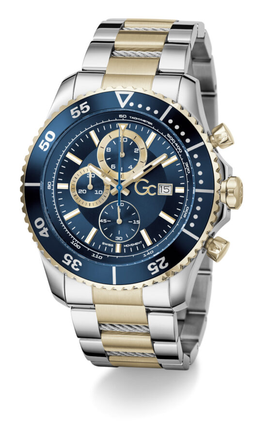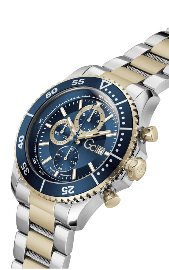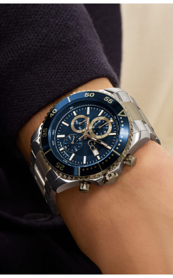 Ανδρικό ρολόι GC SPEEDRACER Z51007G7 διαμέτρου 44mm, με μηχανισμό Quartz χρονογράφου ακριβείας, μπλε καντράν, κάσα και μπρασελέ από ανοξείδωτο ατσάλι.