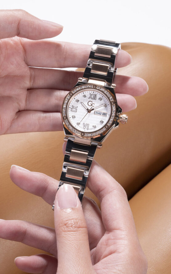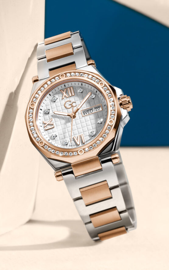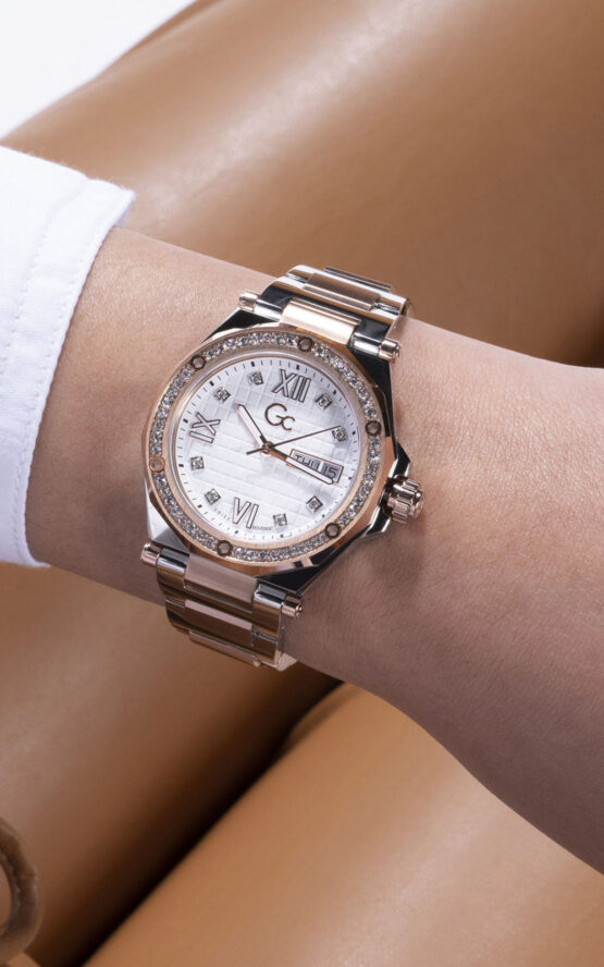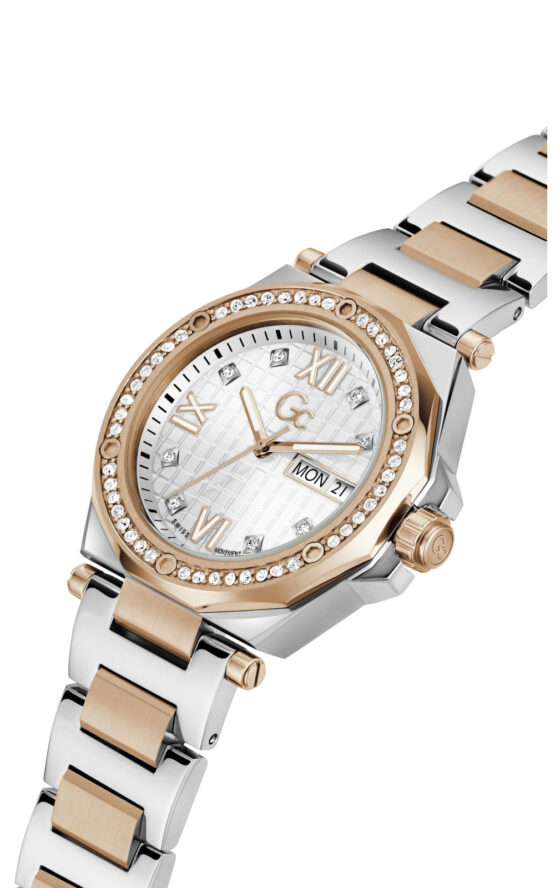 Γυναικείο ρολόι GC LEGACY LADY Z20002L1MF διαμέτρου 34mm, με μηχανισμό QUARTZ ακριβείας, λευκό καντράν, κάσα και μπρασελέ από ανοξείδωτο ατσάλι.