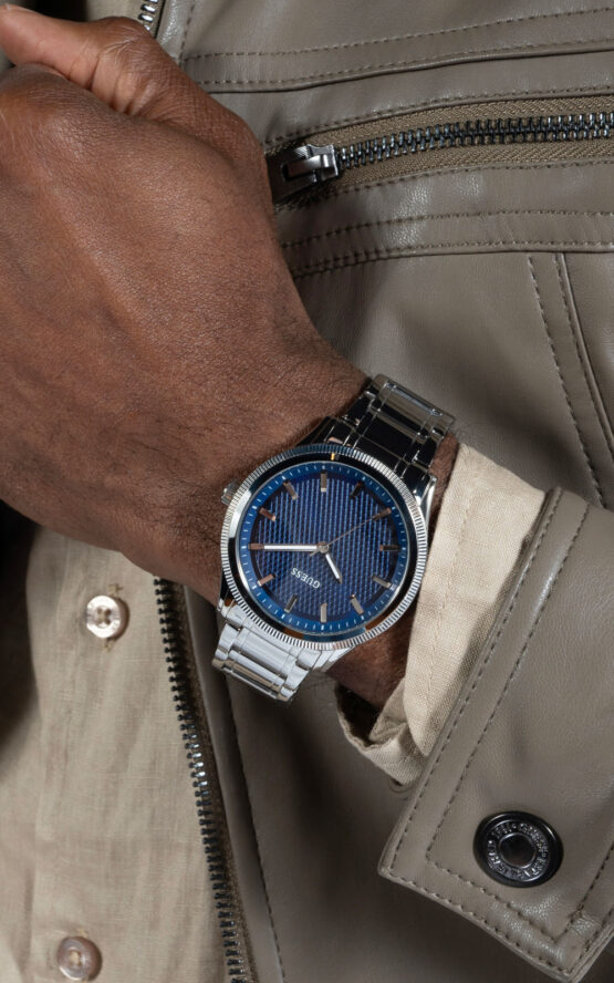 Ανδρικό ρολόι διαμέτρου 44mm με μηχανισμό QUARTZ ακριβείας. Έχει μπλε καντράν με ασημί δείκτες και λεπτομέρειες. Η κάσα του είναι από ανοξείδωτο ατσάλι, με κρύσταλλο από ορυκτό κρύσταλλο ειδικής σκλήρυνσης. Έχει μπρασελέ από ανοξείδωτο ατσάλι και κούμπωμα ασφαλείας. Δεν είναι αδιάβροχο.