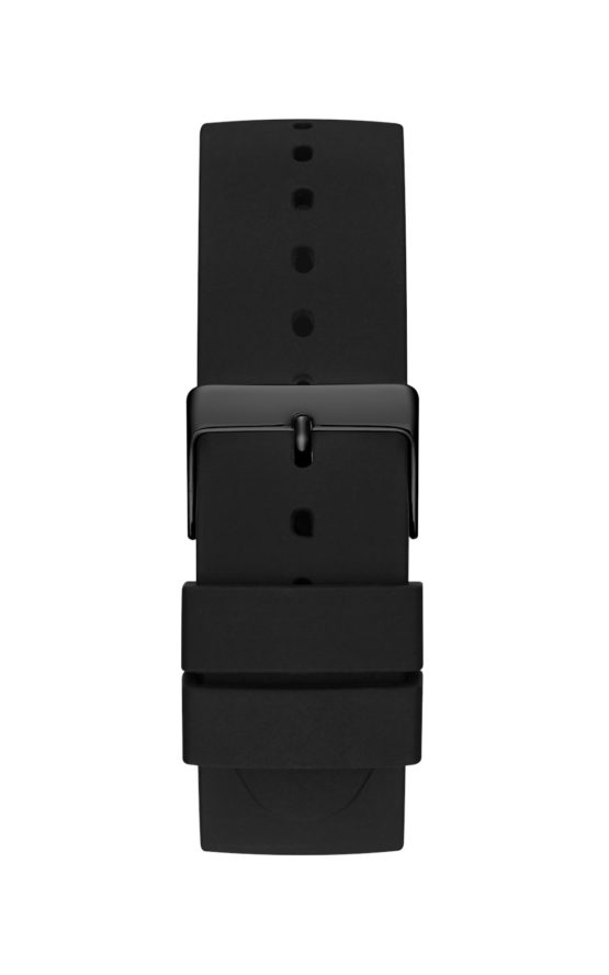Ανδρικό ρολόι GUESS IMPRINT W1161G2 διαμέτρου 44mm, με μηχανισμό QUARTZ ακριβείας, μαύρο καντράν, κάσα από ανοξείδωτο ατσάλι και μαύρο λουράκι καουτσούκ.