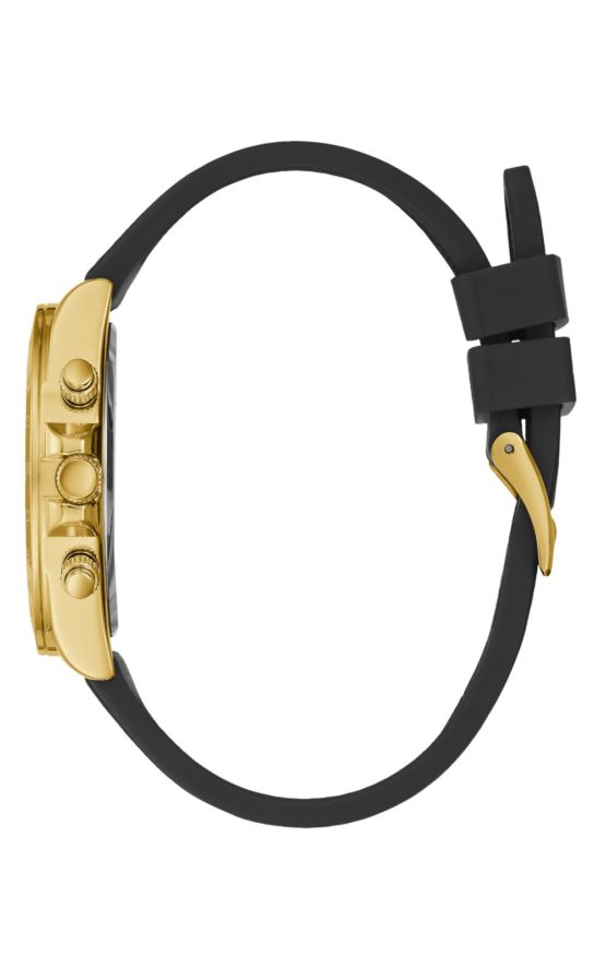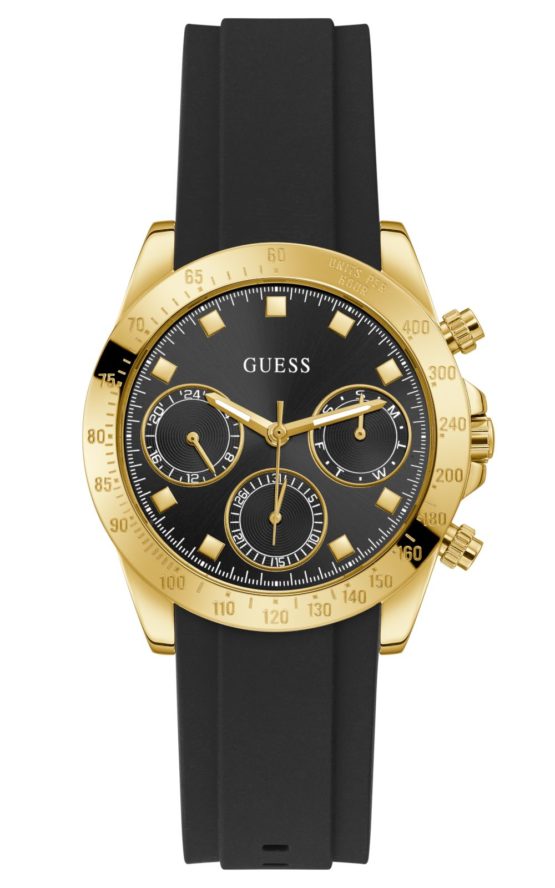 Γυναικείο ρολόι GUESS ECLIPSE GW0315L1 διαμέτρου 38mm, με μηχανισμό QUARTZ MULTIFUCTION ακριβείας, μαύρο καντράν, κάσα από ανοξείδωτο ατσάλι και μαύρο καουτσούκ λουράκι.