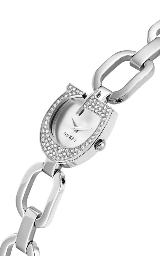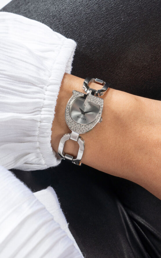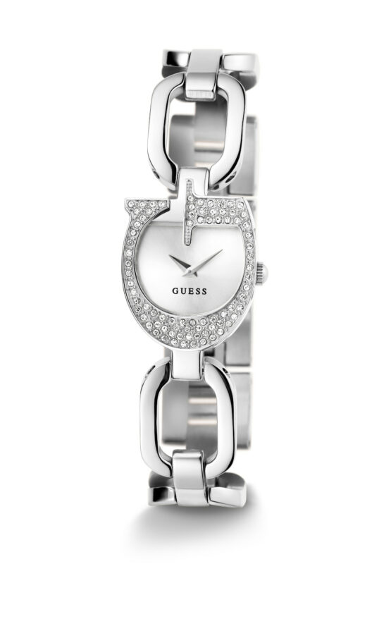 Γυναικείο ρολόι GUESS GIA GW0683L1 διαμέτρου 22mm, με μηχανισμό QUARTZ ακριβείας, ασημένιο καντράν, κάσα και μπρασελέ από ανοξείδωτο ατσάλι.