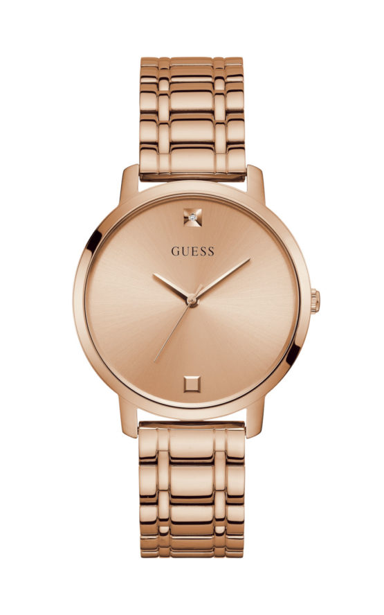 Γυναικείο ρολόι GUESS NOVA W1313L3 διαμέτρου 40mm, με μηχανισμό QUARTZ ακριβείας, ροζ επίχρυσο καντράν, ροζ επίχρυση κάσα και μπρασελέ από ανοξείδωτο ατσάλι.