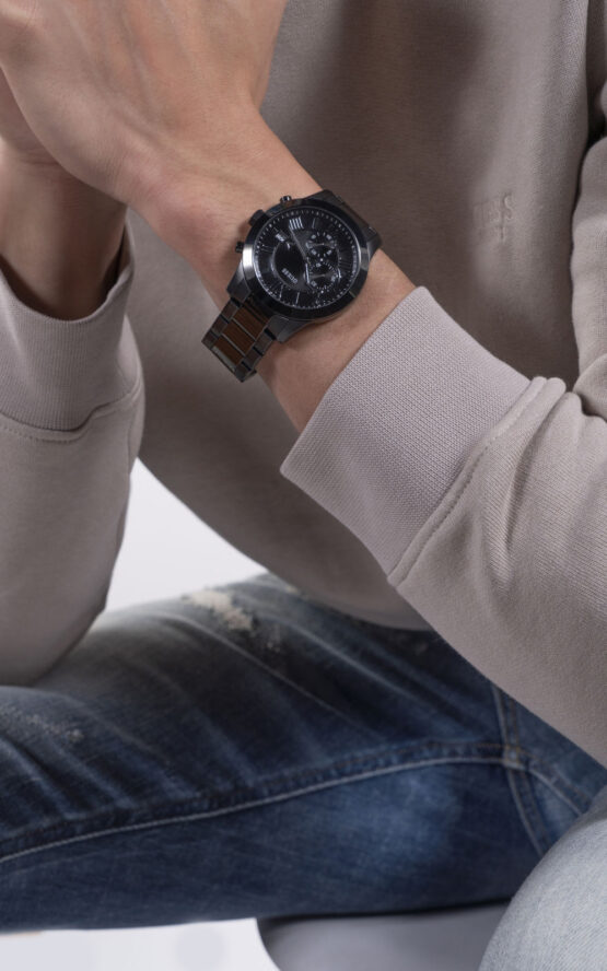 Ανδρικό ρολόι διαμέτρου 45mm, με μηχανισμό Quartz χρονογράφου ακριβείας. Έχει μαύρο καντράν με ασημένιους δείκτες και λεπτομέρειες και ένδειξη ημερομηνίας. Η κάσα του είναι μαύρη από ανοξείδωτο ατσάλι, με κρύσταλλο από ορυκτό κρύσταλλο ειδικής σκλήρυνσης. Έχει μαύρο μπρασελέ από ανοξείδωτο ατσάλι και κούμπωμα ασφαλείας. Είναι αδιάβροχο (5ΑΤΜ).