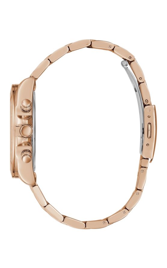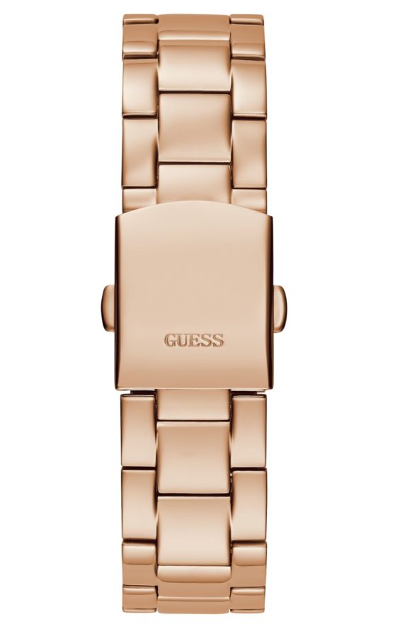 Γυναικείο ρολόι GUESS ECLIPSE GW0314L3 διαμέτρου 38mm, με μηχανισμό QUARTZ MULTIFUCTION ακριβείας, ροζ χρυσό καντράν, κάσα και μπρασελέ από ανοξείδωτο ατσάλι.