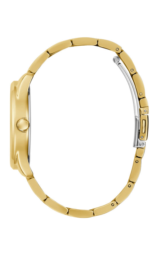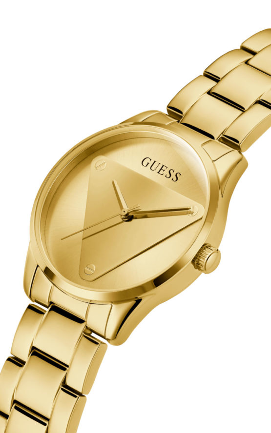 Γυναικείο ρολόι GUESS EMBLEM GW0485L1 διαμέτρου 36mm, με μηχανισμό Quartz Ακριβείας, χρυσό καντράν, κάσα και μπρασελέ από ανοξείδωτο ατσάλι.