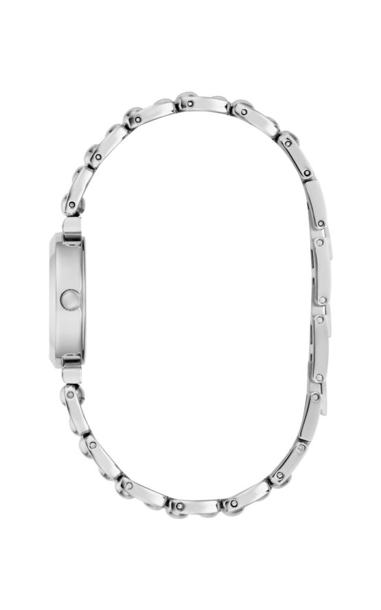 Γυναικείο ρολόι διαμέτρου 26mm με μηχανισμό QUARTZ ακριβείας. Έχει ασημένιο καντράν με ασημένιους δείκτες και λεπτομέρειες και πέτρες. Η κάσα του είναι από ανακυκλωμένο ατσάλι με κρύσταλλο από ορυκτό κρύσταλλο ειδικής σκλήρυνσης. Έχει μπρασελέ από ανακυκλωμένο ατσάλι και κούμπωμα ασφαλείας. Είναι αδιάβροχο 5 ΑΤΜ.