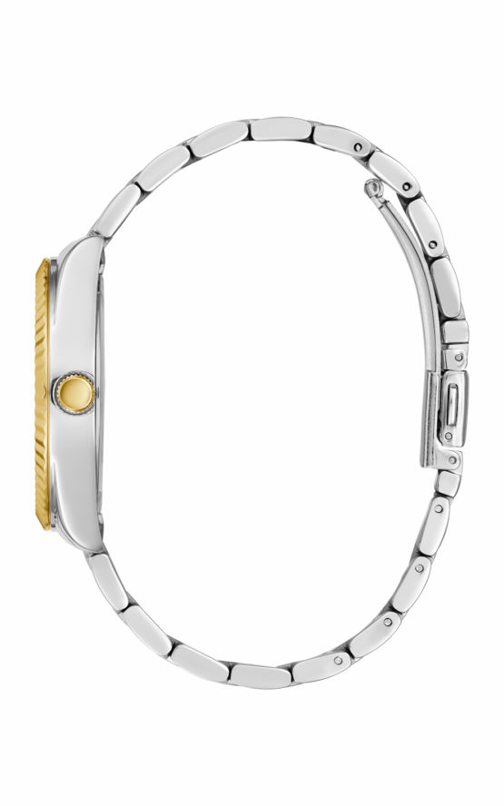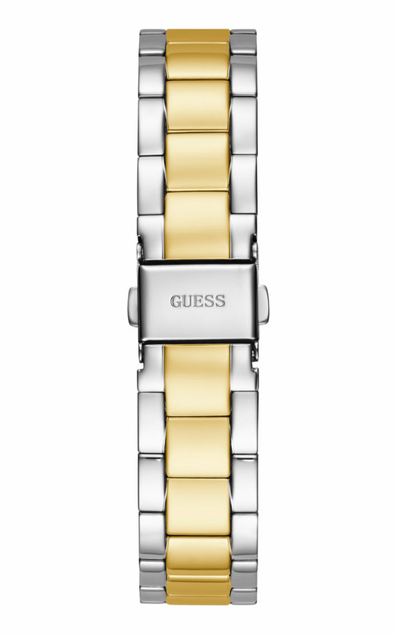 Γυναικείο ρολόι GUESS LUNA GW0308L5 διαμέτρου 34mm, με μηχανισμό QUARTZ ακριβείας, λευκό καντράν, κάσα και μπρασελέ από ανοξείδωτο ατσάλι.