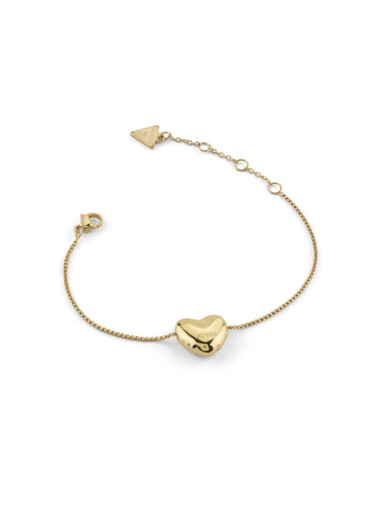 Γυναικείο βραχιόλι GUESS STEEL χρυσού χρώματος. Είναι διακοσμημένο με καρδιά και λογότυπο(21cm).