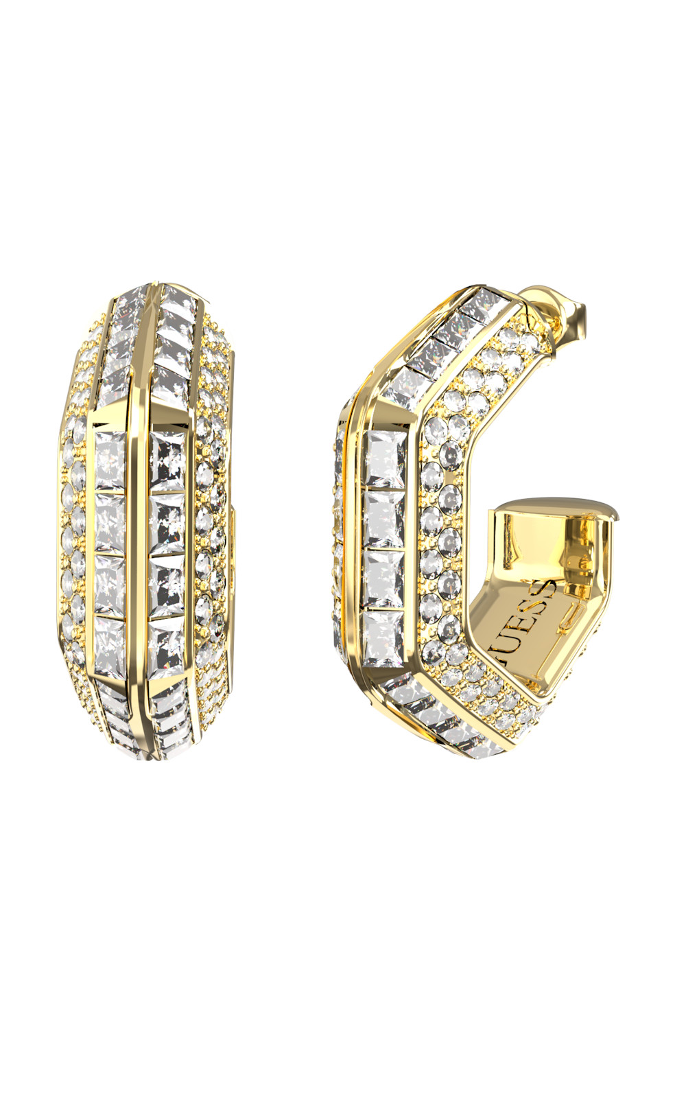 Γυναικεία σκουλαρίκια GUESS STEEL κρίκοι, χρυσοί με πέτρες και λογότυπο(2cm).
