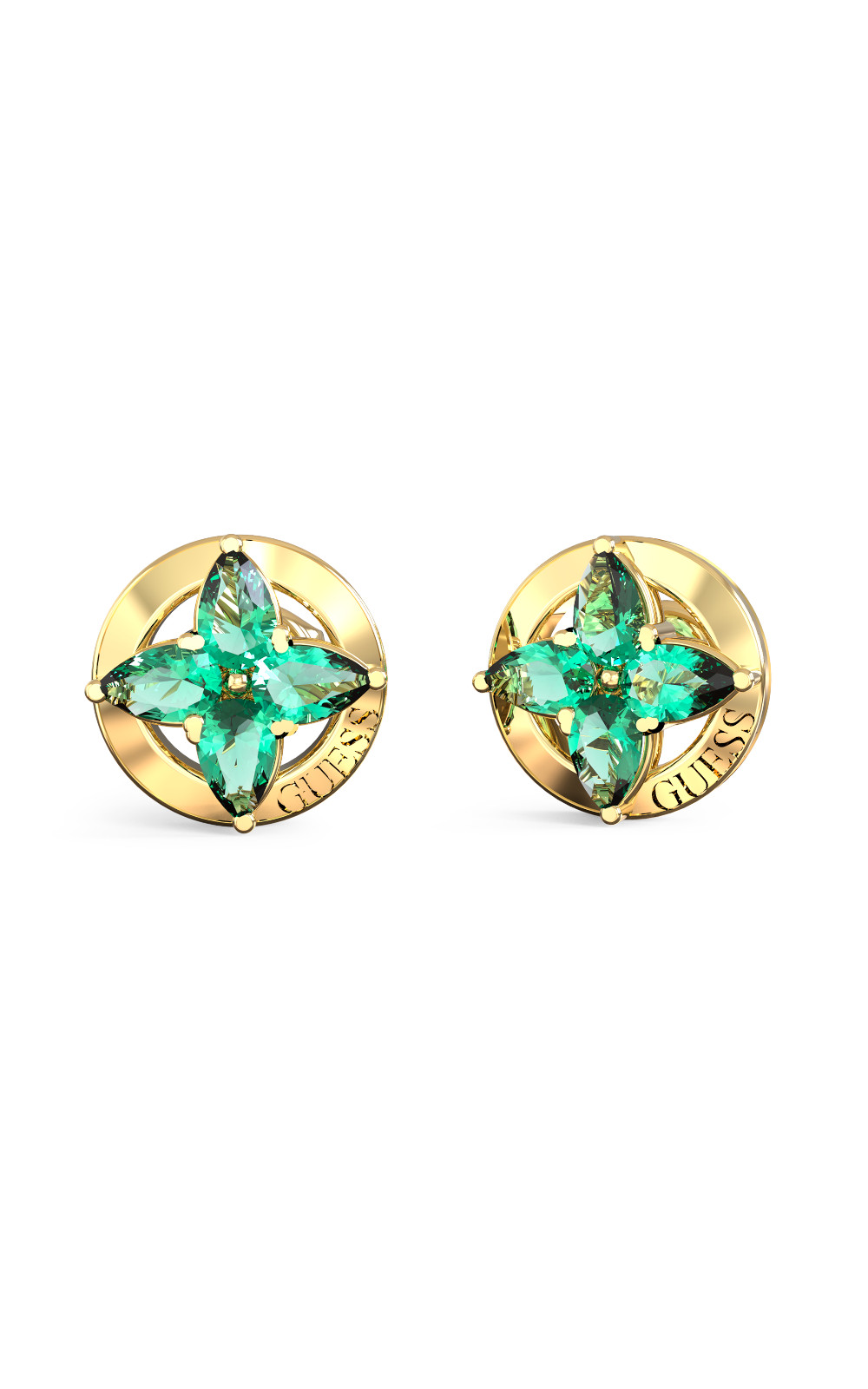Γυναικεία σκουλαρίκια GUESS STEEL SECRET GARDEN JUBE06040JWYGGNT/U, χρυσά με πράσινες πέτρες(0,8cm).