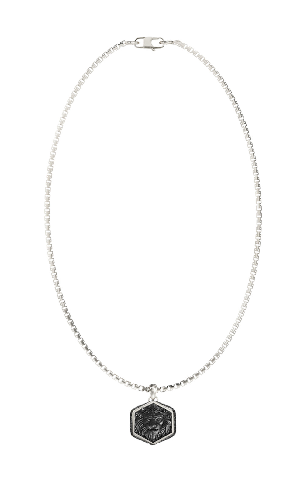 Ανδρικό κολιέ GUESS STEEL ασημένιο με σχέδιο μαύρο λιοντάρι(58,42cm).