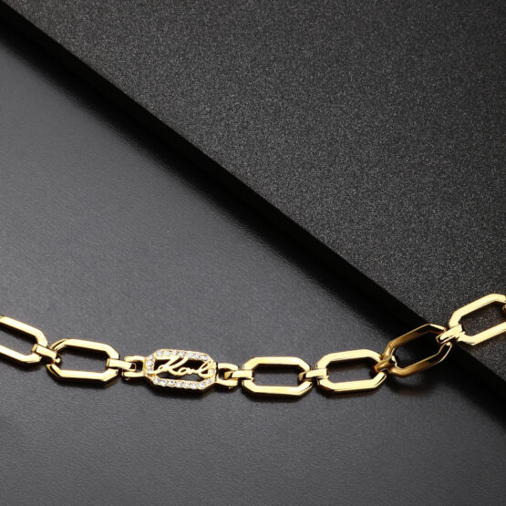 Γυναικείο βραχιόλι KARL LAGERFELD χρυσού χρώματος με πέτρες. Είναι κατασκευασμένο από ανοξείδωτο ατσάλι και είναι διακοσμημένο με άσπρες πέτρες(16+3cm).