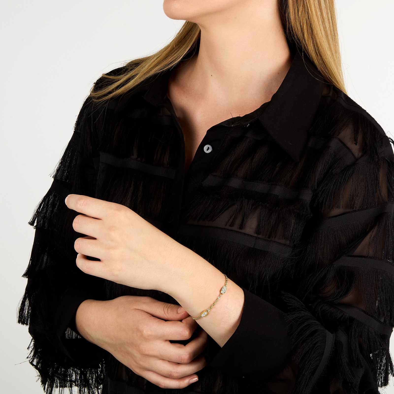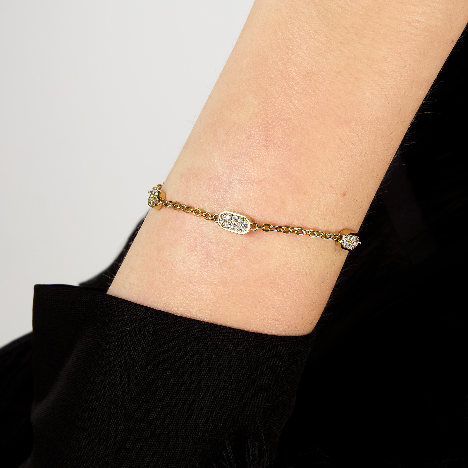 Γυναικείο βραχιόλι KARL LAGERFELD χρυσού χρώματος. Είναι κατασκευασμένο από ανοξείδωτο ατσάλι και είναι διακοσμημένο με πέτρες(17+3cm).