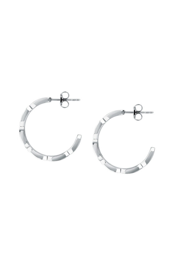 Γυναικεία σκουλαρίκια KARL LAGERFELD ασημένιου χρώματος. Είναι κατασκευασμένα από ανοξείδωτο ατσάλι και είναι διακοσμημένα με πέτρες(2,4cm).
