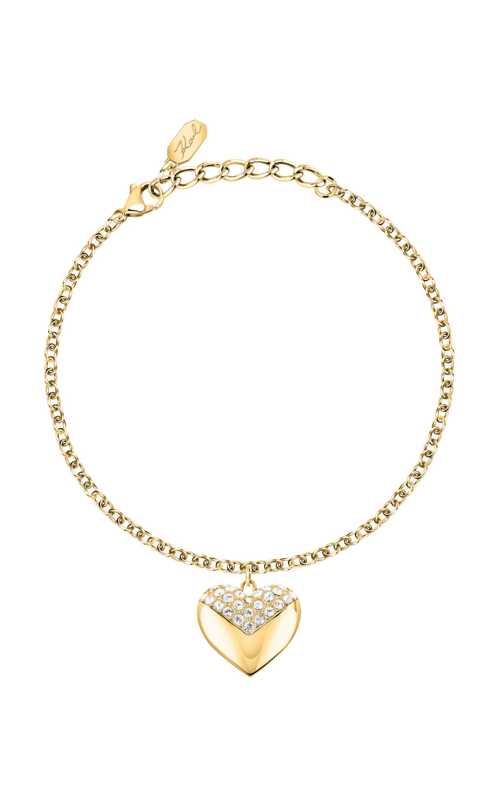 Γυναικείο βραχιόλι KARL LAGERFELD PAVE AMOUR KLBJW05 χρυσού χρώματος με καρδιά με πέτρες και λογότυπο(17+3cm).