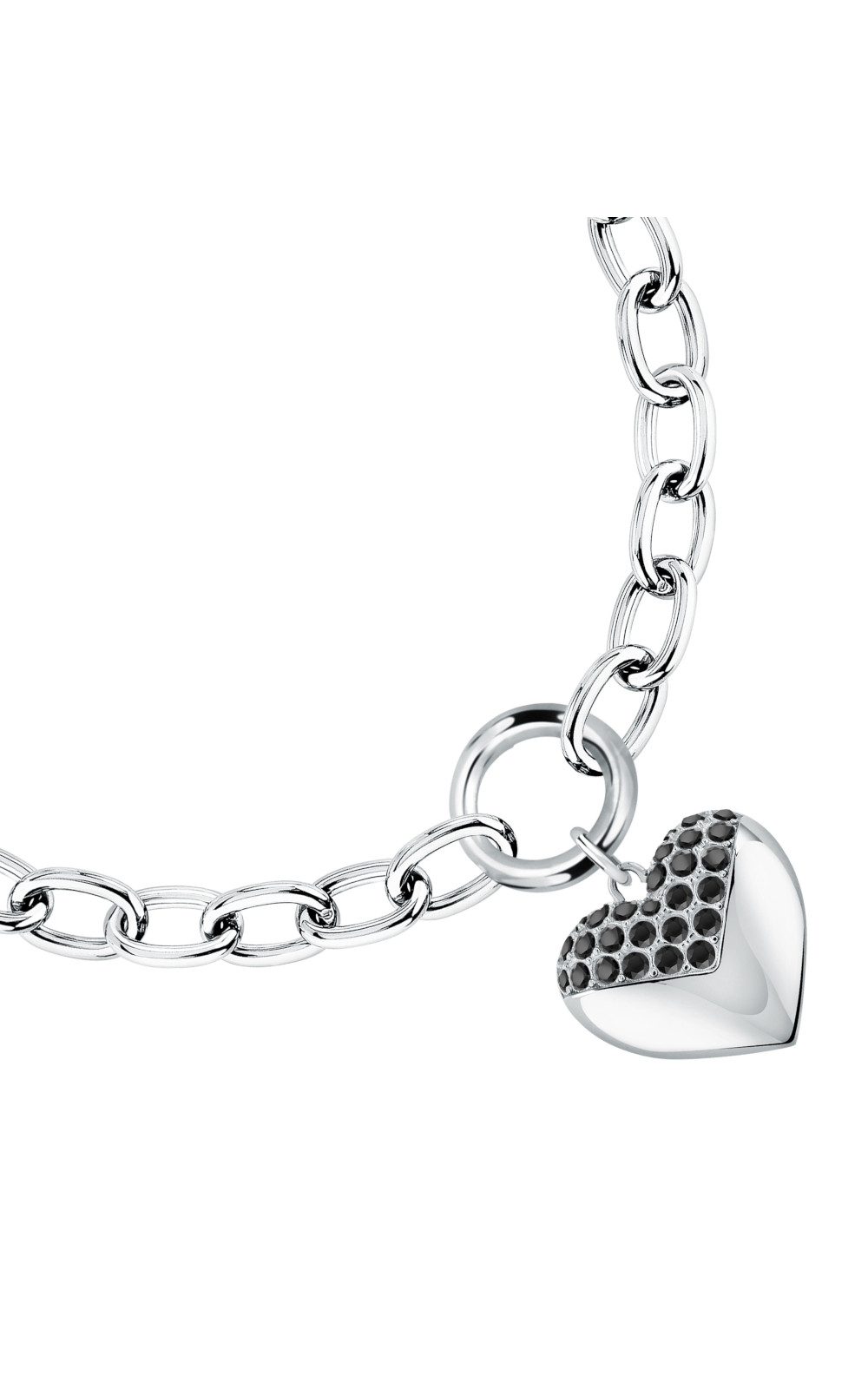 Γυναικείο βραχιόλι KARL LAGERFELD PAVE AMOUR KLBJW06 ασημένιου χρώματος με καρδιά με πέτρες και λογότυπο(17+3cm).