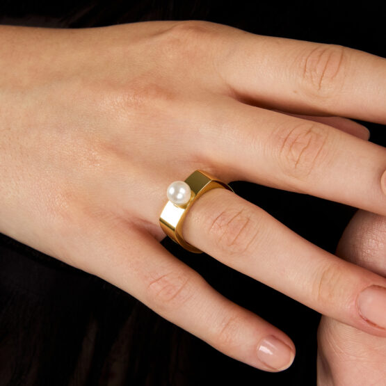 Γυναικείο δαχτυλίδι KARL LAGERFELD PEARL KLAYR160-No.12 χρυσού χρώματος με πέρλα.