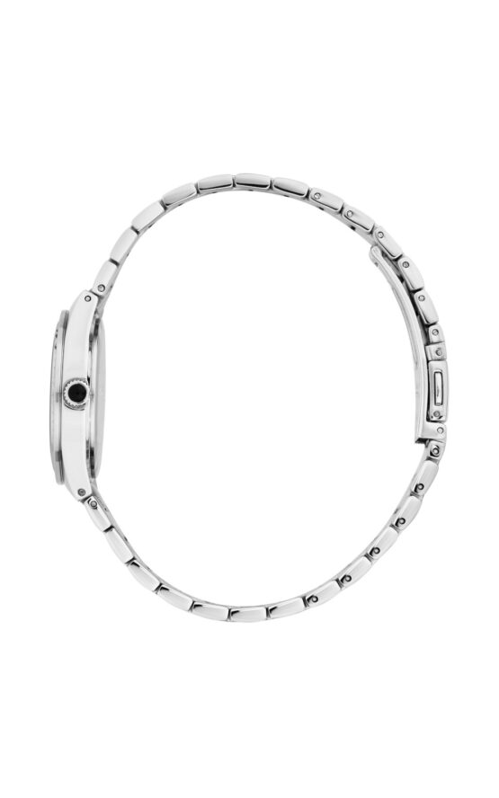 Γυναικείο ρολόι διαμέτρου 30mm με μηχανισμό Quartz ακριβείας. Έχει υπόλευκο καντράν με ασημί δείκτες και είναι διακοσμημένο με πέτρες. Η κάσα του είναι από ανοξείδωτο ατσάλι με κρύσταλλο από ορυκτό κρύσταλλο. Έχει μπρασελέ από ανοξείδωτο ατσάλι και κούμπωμα ασφαλείας. Είναι αδιάβροχο (5 ΑΤΜ).
