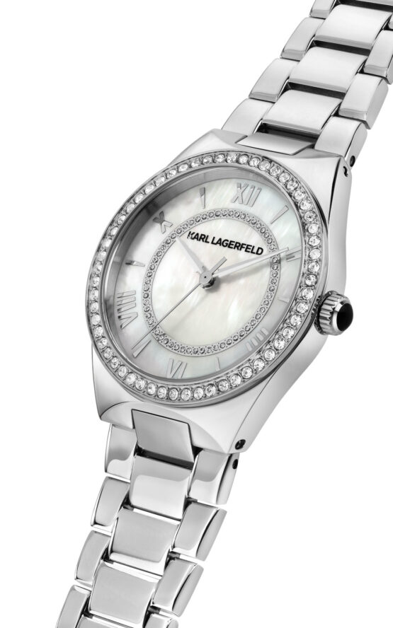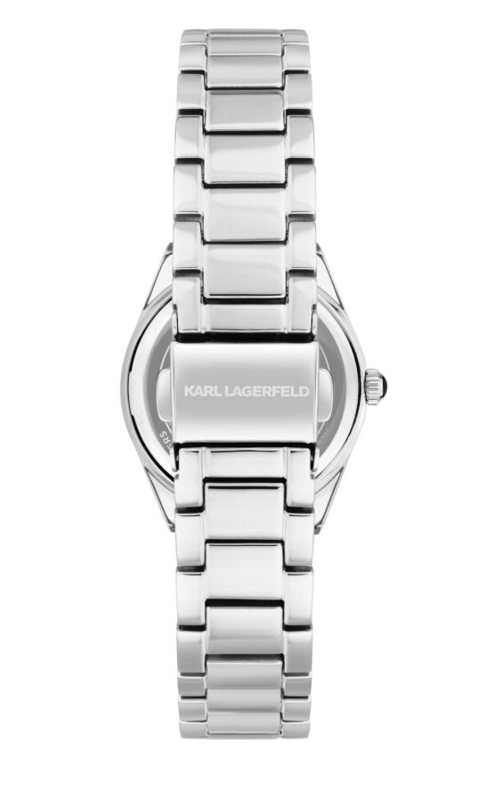 Γυναικείο ρολόι KARL LAGERFELD HAMBURG R0553105506 διαμέτρου 30mm, με μηχανισμό QUARTZ ακριβείας, υπόλευκο καντράν, κάσα και μπρασελέ από ανοξείδωτο ατσάλι και κούμπωμα ασφαλείας.