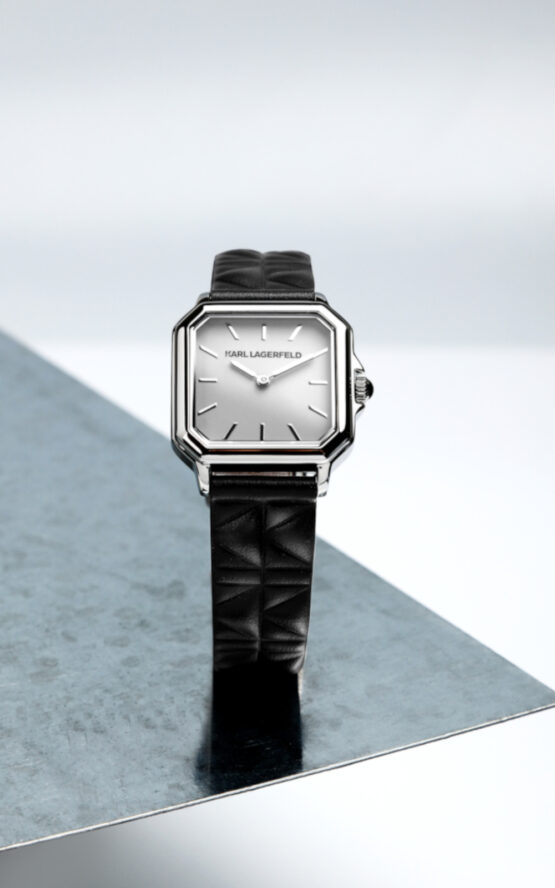 Γυναικείο ρολόι KARL LAGERFELD SQUARE CLASSICS R0551102501 διαμέτρου 33X27,8mm, με μηχανισμό QUARTZ ακριβείας, λευκό καντράν, κάσα από ανοξείδωτο ατσάλι και δερμάτινο λουράκι.