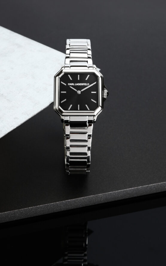 Γυναικείο ρολόι KARL LAGERFELD SQUARE CLASSICS R0553102507 διαμέτρου 33X27,8mm, με μηχανισμό QUARTZ ακριβείας, μαύρο καντράν, κάσα και μπρασελέ από ανοξείδωτο ατσάλι.