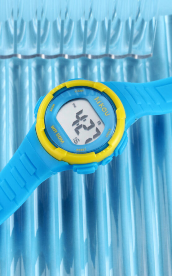 Παιδικό ρολόι KIKOU NEON R4551107005 διαμέτρου 31mm, με μηχανισμό QUARTZ ακριβείας, λευκό καντράν, γαλάζια πλαστική κάσα και γαλάζιο λουράκι.