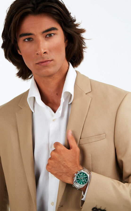Αντρικό ρολόι διαμέτρου 43mm με μηχανισμό Quartz Multifuction ακριβείας. Έχει πράσινο καντράν με ασημένιους δείκτες και λεπτομέρειες. Η κάσα του είναι από ανοξείδωτο ατσάλι με κρύσταλλο από ορυκτό κρύσταλλο. Έχει μπρασελέ από ανοξείδωτο ατσάλι και κούμπωμα ασφαλείας. Είναι αδιάβροχο (5 ΑΤΜ).