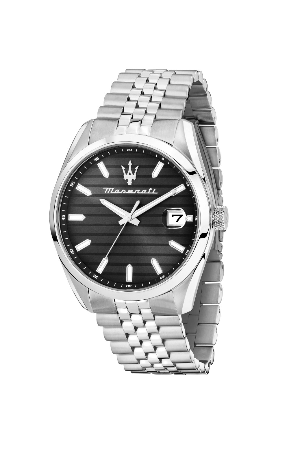 Ανδρικό ρολόι MASERATI ATTRAZIONE R8853151026 διαμέτρου 43mm, με μηχανισμό Quartz Ακριβείας, μαύρο καντράν, κάσα και μπρασελέ από ανοξείδωτο ατσάλι.