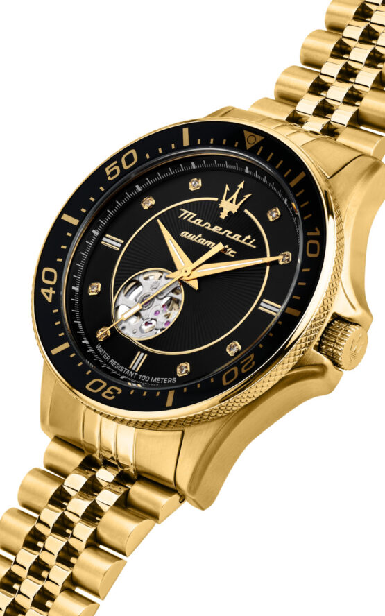 Ανδρικό ρολόι MASERATI SFIDA R8823140012 διαμέτρου 44mm, με αυτόματο μηχανισμό, μαύρο καντράν, κάσα και μπρασελέ από ανοξείδωτο ατσάλι.