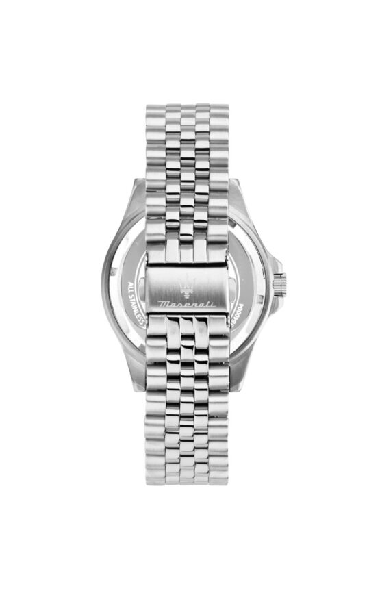Ανδρικό ρολόι MASERATI SFIDA R8853140010 διαμέτρου 44mm, με μηχανισμό Quartz ακριβείας, γκρι καντράν, κάσα και μπρασελέ από ανοξείδωτο ατσάλι.