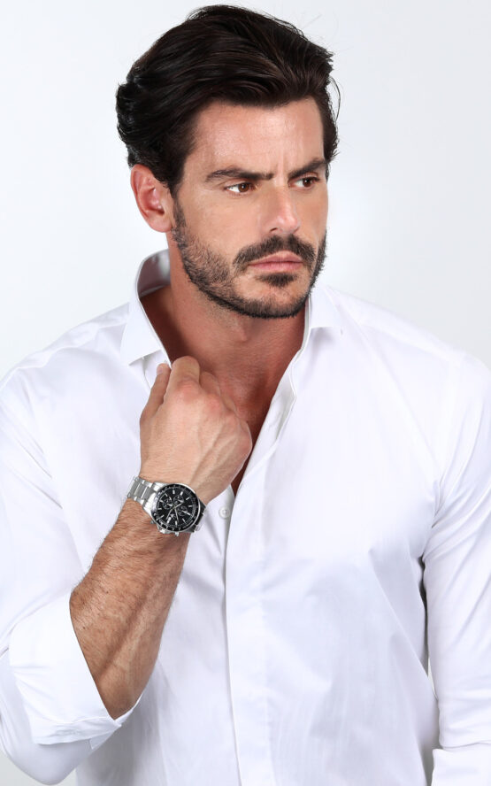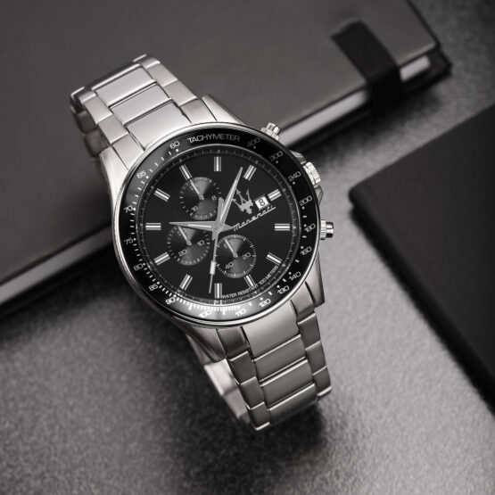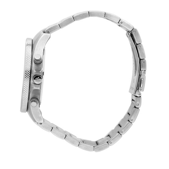 Ανδρικό ρολόι διαμέτρου 44mm με μηχανισμό QUARTZ χρονογράφου ακριβείας. Έχει μαύρο καντράν με ασημένιους δείκτες και λεπτομέρειες και ένδειξη ημερομηνίας. Η κάσα του είναι από ανοξείδωτο ατσάλι με μαύρες λεπτομέρειες και κρύσταλλο από ορυκτό κρύσταλλο ειδικής σκλήρυνσης. Έχει μπρασελέ από ανοξείδωτο ατσάλι και κούμπωμα ασφαλείας. Είναι αδιάβροχο (10 ΑΤΜ).