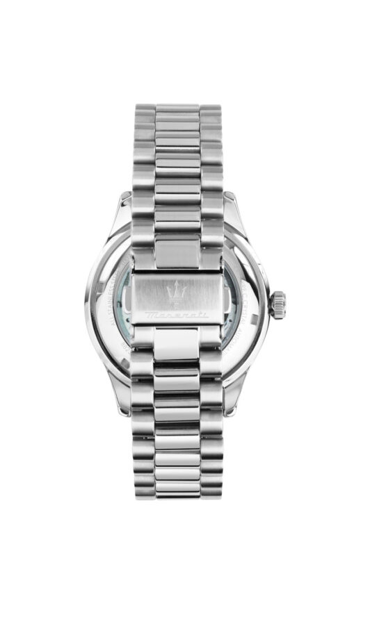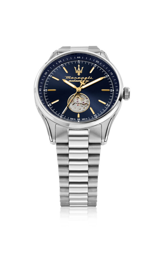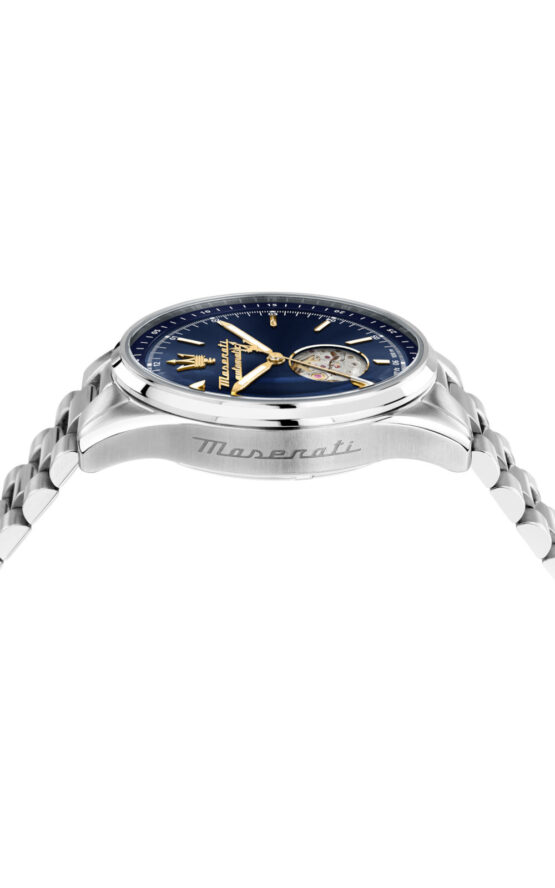 Ανδρικό ρολόι MASERATI SORPASSO R8823124002 διαμέτρου 42mm, με αυτόματο μηχανισμό, μπλε καντράν, κάσα και μπρασελέ από ανοξείδωτο ατσάλι.