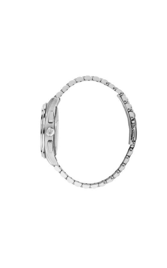 Ανδρικό ρολόι διαμέτρου 42mm με μηχανισμό Quartz χρονογράφος ακριβείας. Έχει πράσινο καντράν με ασημένιους δείκτες. Η κάσα του είναι ασημένια από ανοξείδωτο ατσάλι και κρύσταλλο από ορυκτό κρύσταλλο. Έχει ασημένιο μπρασελέ από ανοξείδωτο ατσάλι και κούμπωμα ασφαλείας. Είναι αδιάβροχο (10 ΑΤΜ). Η συσκευασία περιλαμβάνει και δερμάτινο λουράκι, μαύρου χρώματος.