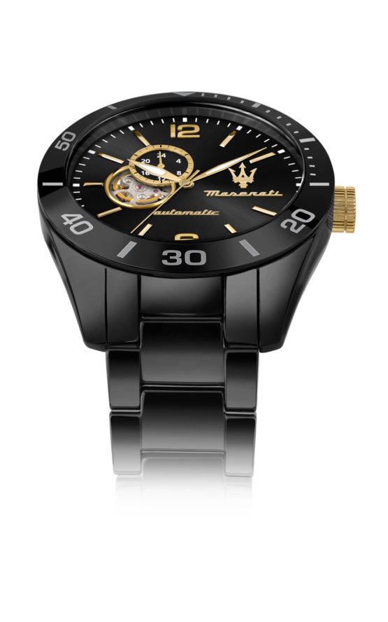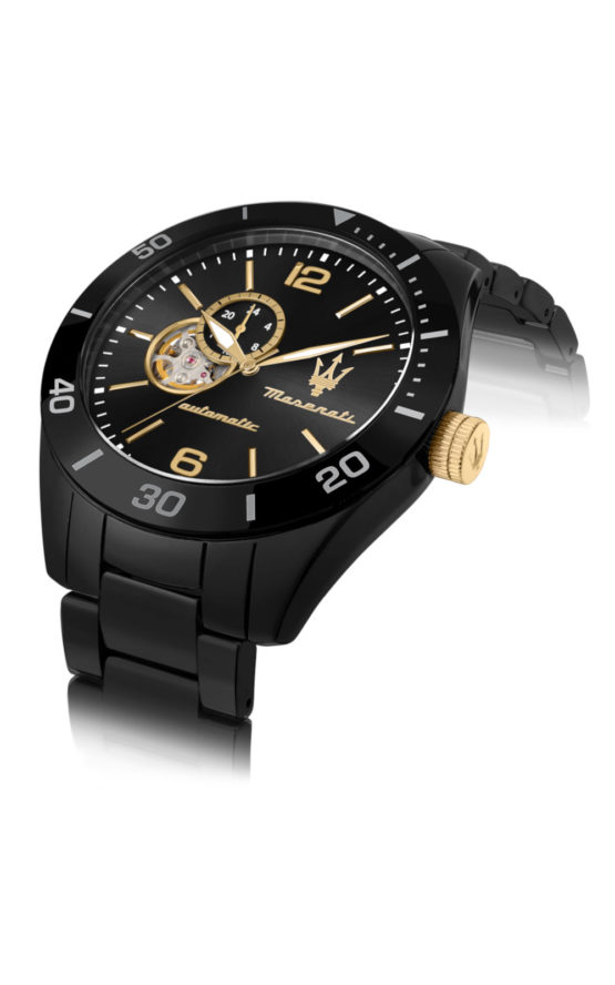 Ανδρικό ρολόι MASERATI TRAGUARDO R8823150001 διαμέτρου 45mm, με αυτόματο μηχανισμό, μαύρο καντράν και κάσα – μπρασελέ κεραμεικά.