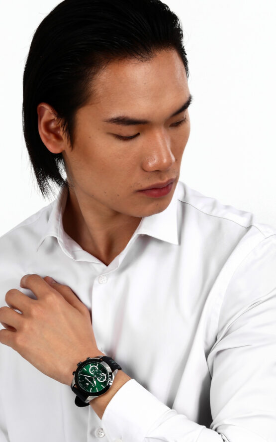 Αντρικό ρολόι διαμέτρου 45mm με μηχανισμό Quartz Χρονογράφος Ακριβείας. Έχει πράσινο καντράν με ασημένιους δείκτες και ασημένιες λεπτομέρειες. Η κάσα του είναι από ανοξείδωτο ατσάλι και κρύσταλλο από ορυκτό κρύσταλλο ειδικής σκλήρυνσης. Έχει μαύρο λουράκι από καουτσούκ και κούμπωμα τοκάς. Είναι αδιάβροχο (10 ΑΤΜ).