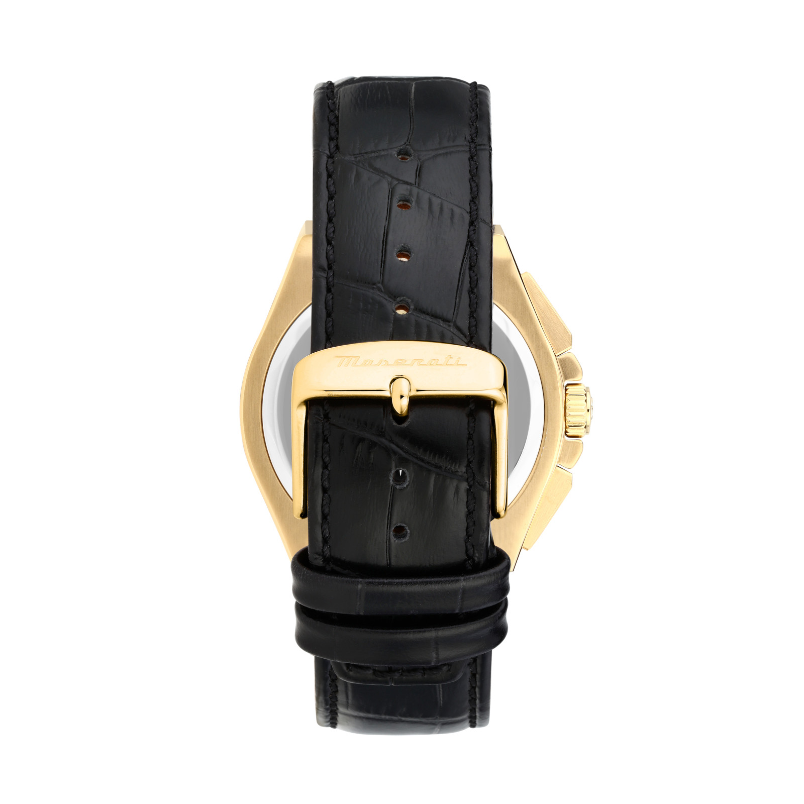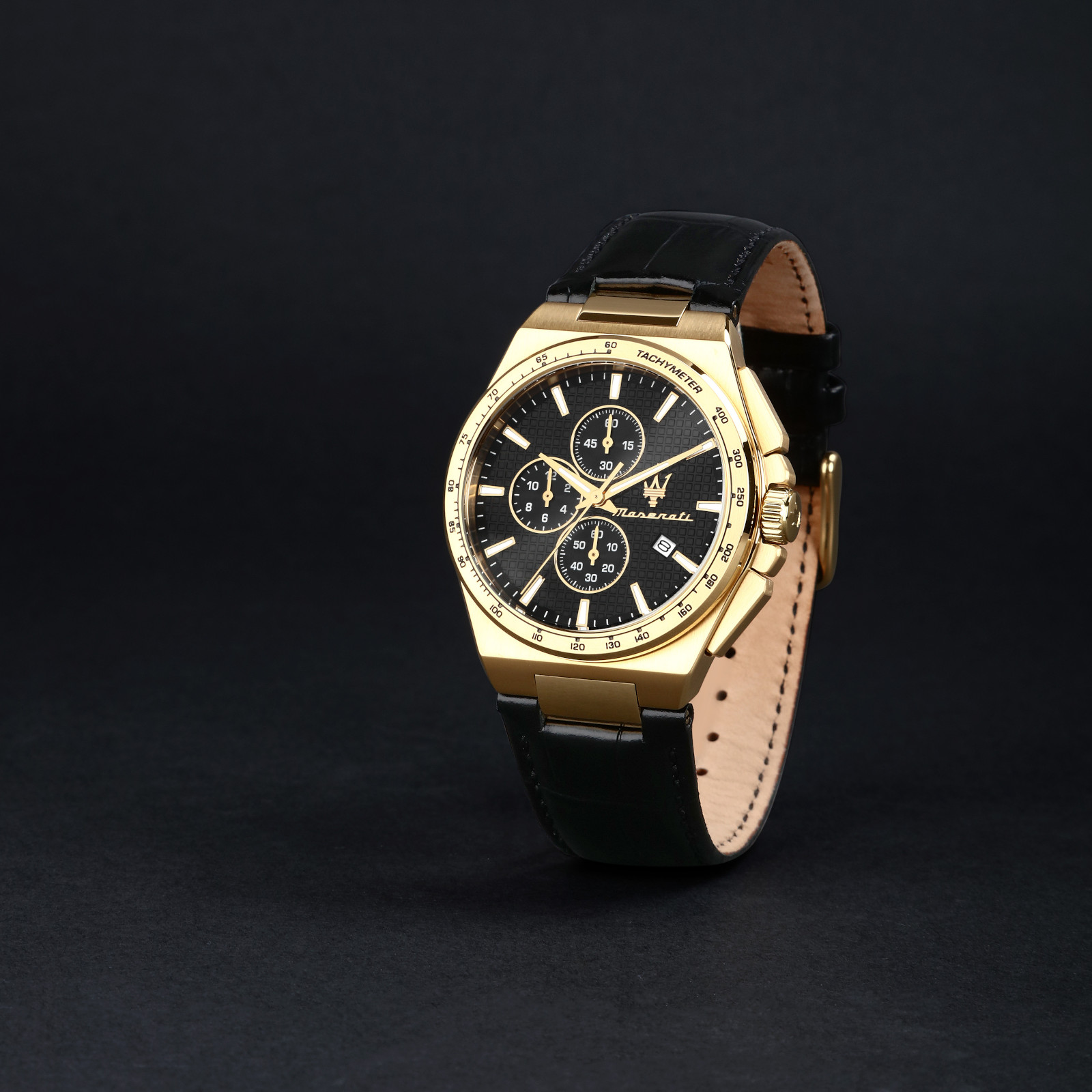 Ανδρικό ρολόι MASERATI VELOCITA SLIM R8871653001 διαμέτρου 41mm, με μηχανισμό Quartz Χρονογράφος Ακριβείας, μαύρο καντράν και δερμάτινο λουράκι.
