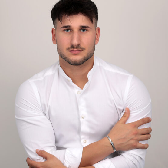 Ανδρικό βραχιόλι MASERATI ICONIC JM420ATK03 από ανοξείδωτο ατσάλι, ασημένιου με μπλε λεπτομέρειες με λογότυπο(22cm).