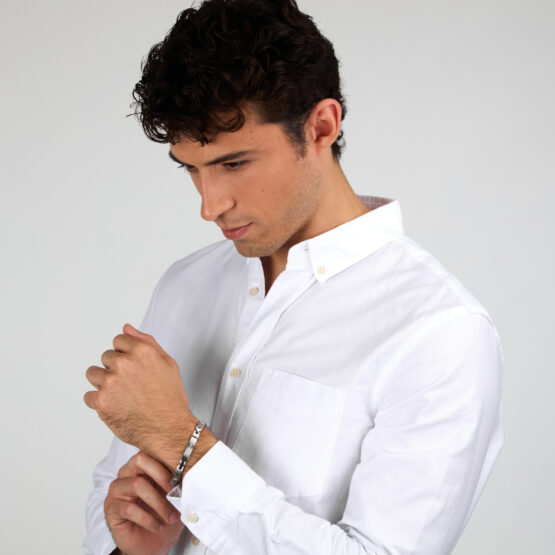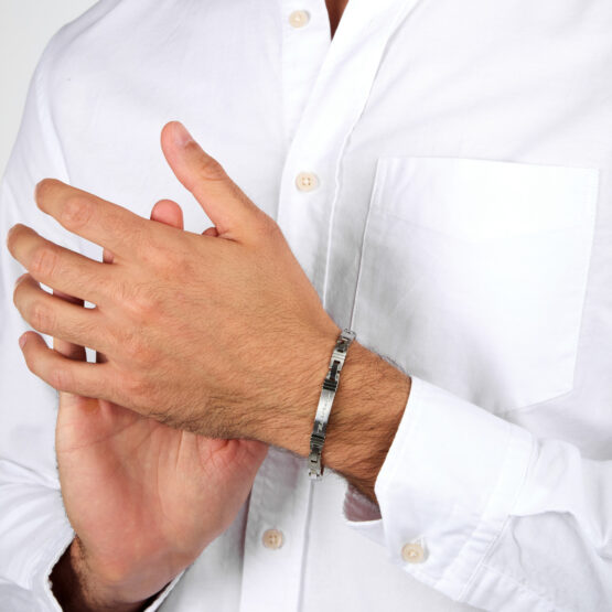 Ανδρικό βραχιόλι MASERATI από ανοξείδωτο ατσάλι. To βραχιόλι είναι ασημένιου χρώματος και έχει λογότυπο της εταιρείας(21cm).